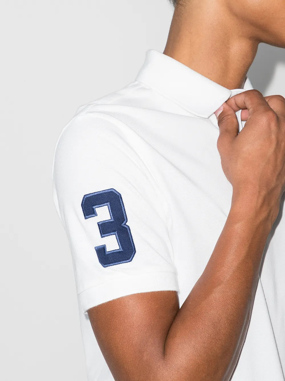 No polo, um jogador que usa o patch número 3 é considerado o mais forte. A Polo Ralph Lauren adorna a manga deste clássico polo com o número, fazendo uma alusão ao esporte que inspirou fortemente a marca de estilo universitário. Já o logotipo Triple-Pony é o centro desta peça, exibindo sua rica herança.