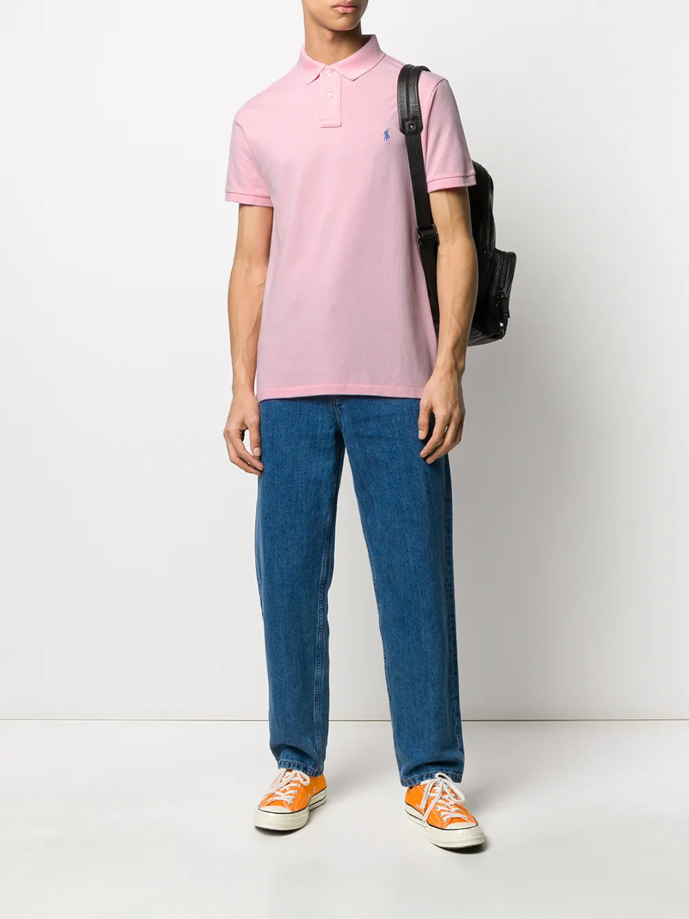 Camisa polo de manga curta em algodão rosa claro da Polo Ralph Lauren com gola polo canelada, logotipo bordado contrastante no peito e bainha reta.