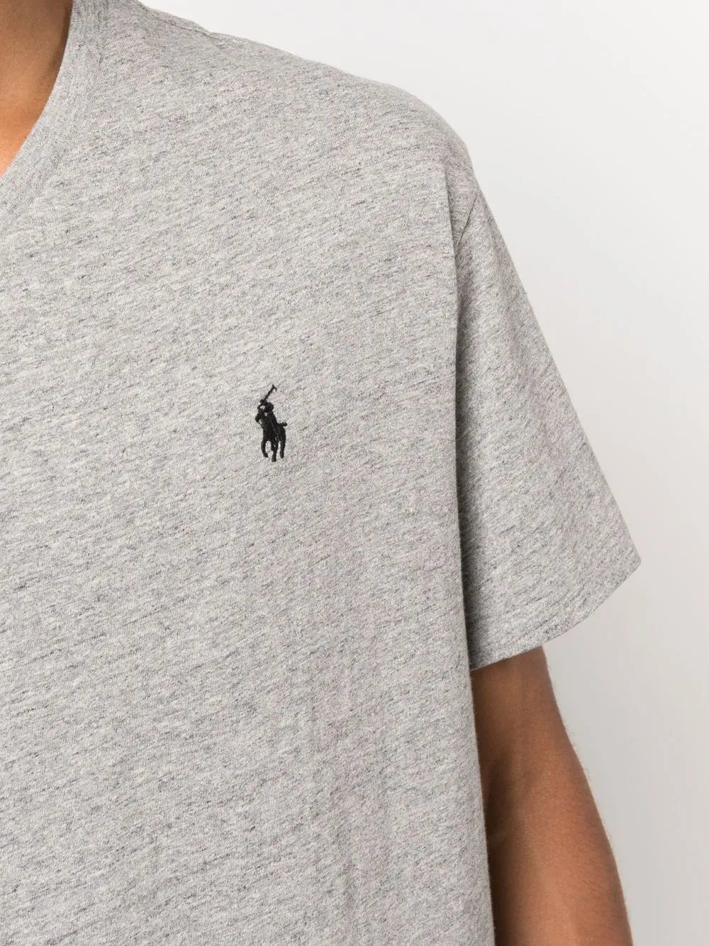Polo Pony com estampa exclusiva de algodão cinza mesclado, decote em V, mangas curtas e bainha reta
