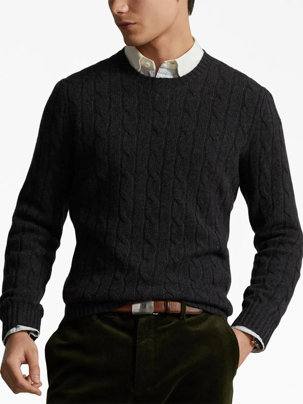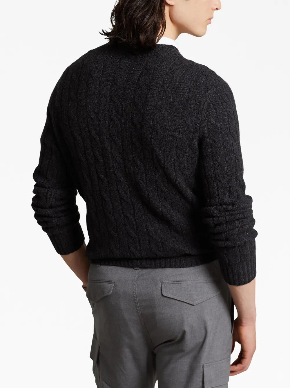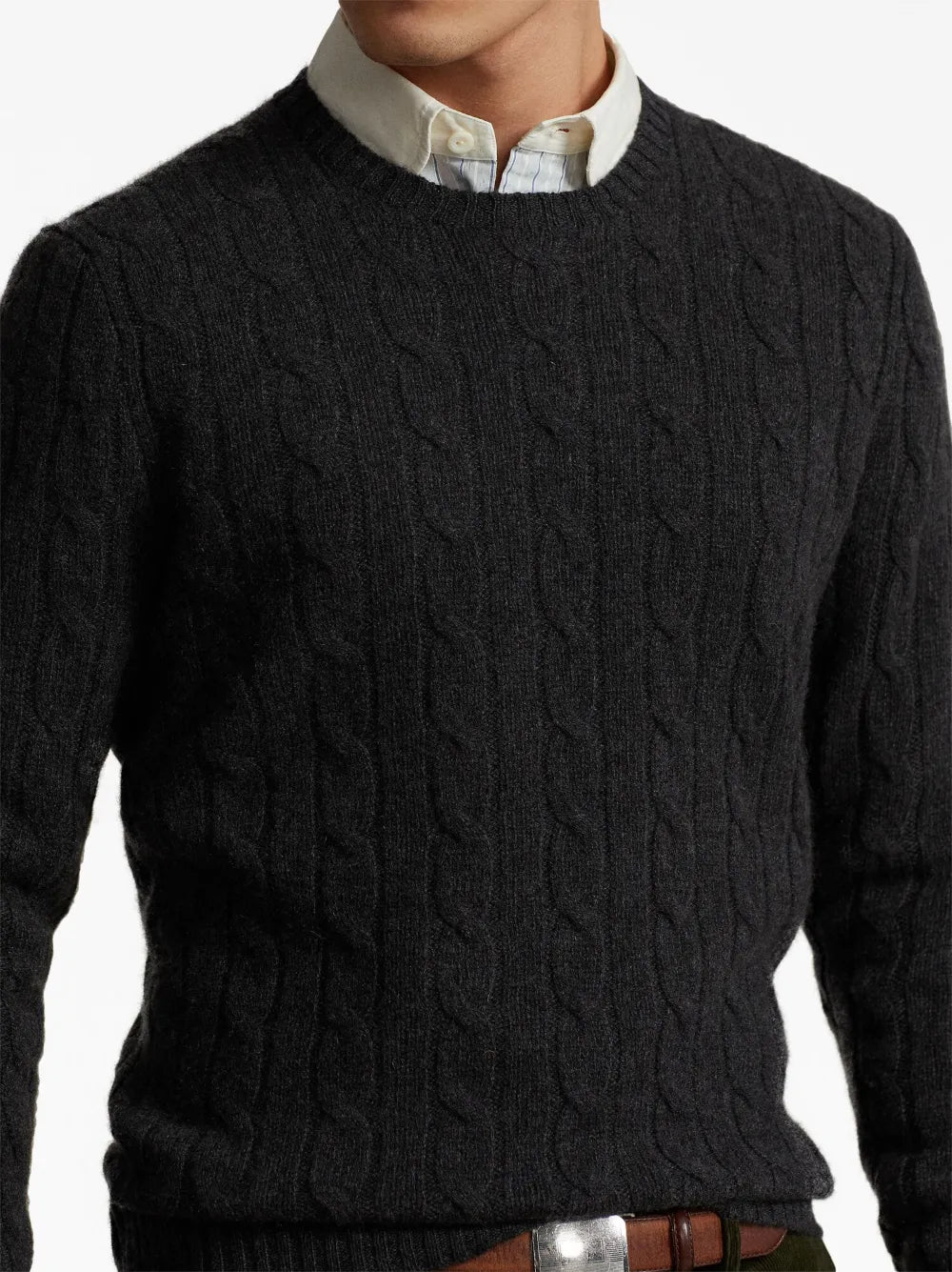 pulôver de gola redonda em tricô trançado