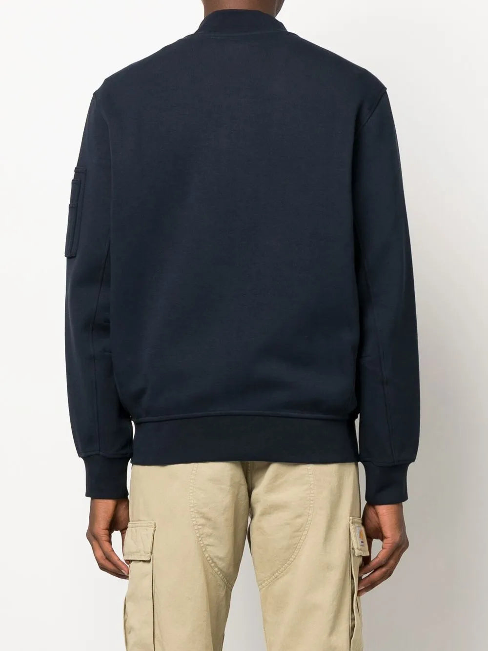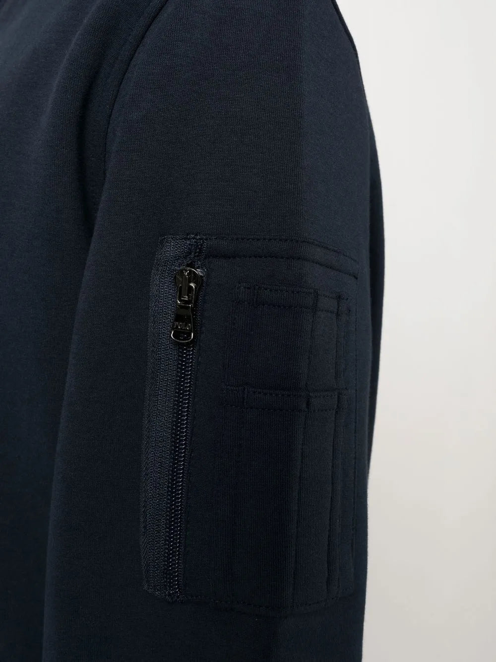 mistura de algodão azul marinho gola redonda gola alta mangas compridas fecho de correr frontal